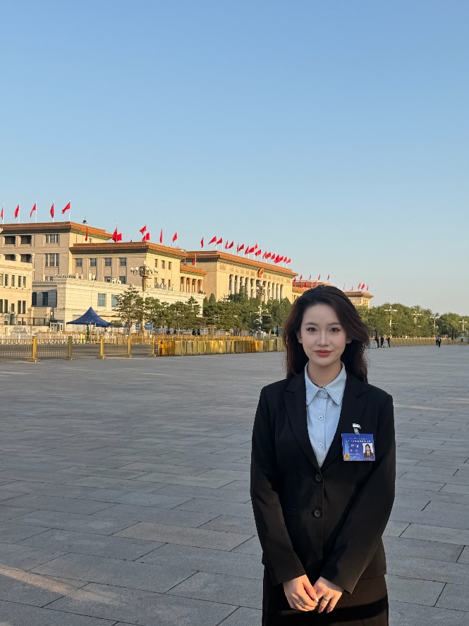 我校肉视频 应用心理学专业2023级硕士研究生孙璞,作为北京团市委选拔的北京市“青马工程”市级班学员代表,参加了此次敬献活动。