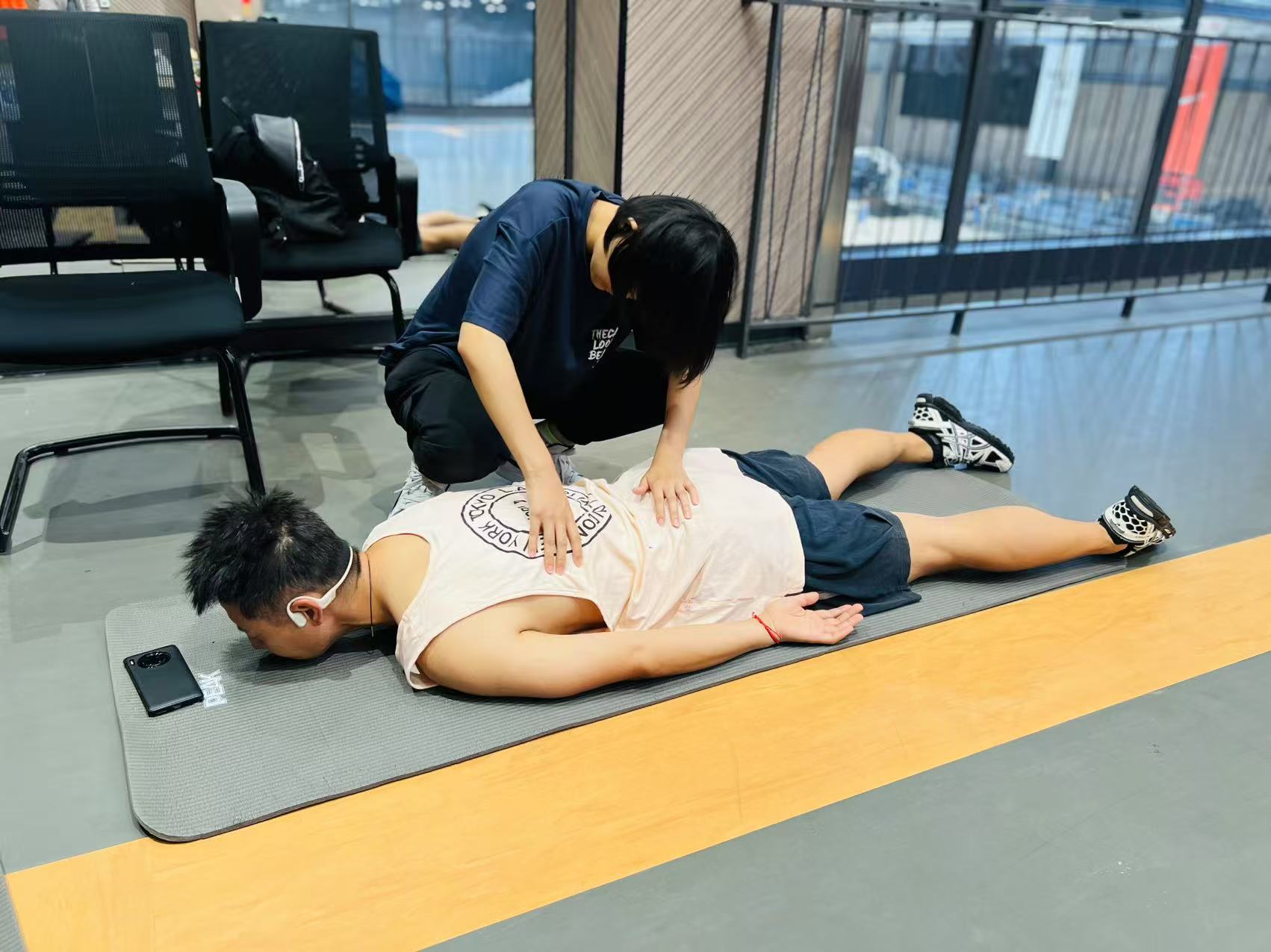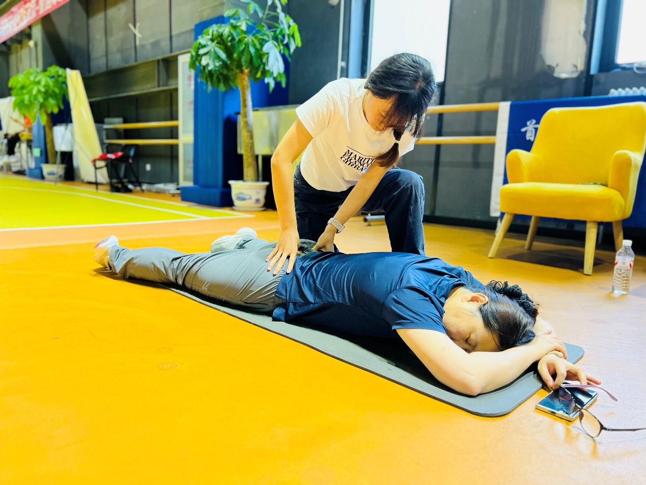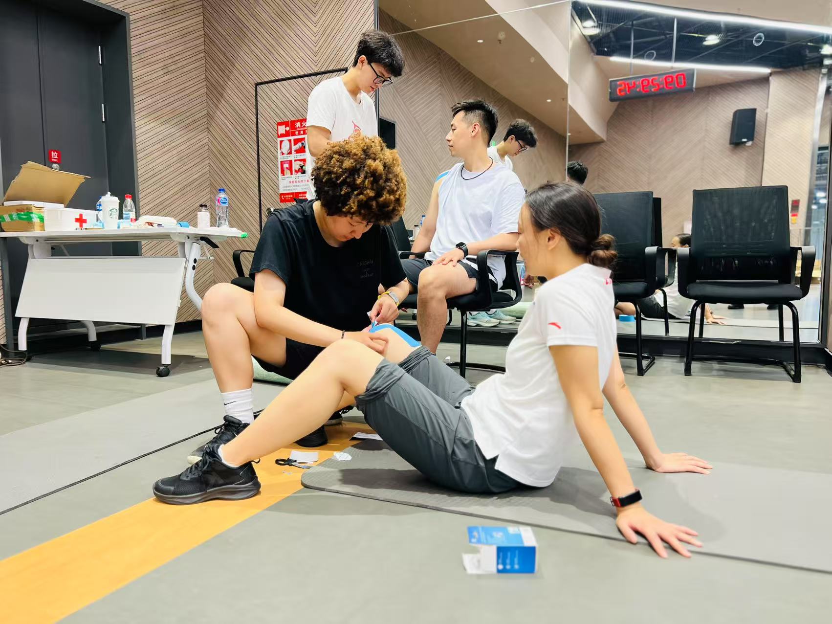 作为肉视频 的学生,团队成员将课堂所学转化为实践动能,围绕“预防-防护-恢复-应急”全流程构建起系统化保障体系。训练前,他们结合广播体操的伸展、转体等动作特点,为队员们量身定制热身方案,通过针对性的肌肉激活与关节舒展训练,从源头降低运动损伤风险;训练过程中,针对肩颈、腰腹等易疲劳部位,精准运用肌肉贴扎技术提供支撑,缓解局部压力;训练结束后,又指导队员使用泡沫轴、筋膜球进行自主放松,辅以专业拉伸和推拿手法加速恢复,为次日训练储备能量。“看似简单的热身指导,背后是运动解剖学、运动生物力学的专业支撑;每一次肌肉贴扎的角度和张力,都需要结合动作力学原理精准把控。”团队成员坦言。在保障过程中,他们始终以专业标准要求自己,把课堂上的理论知识转化为守护健康的实际能力。这种专业精神在应急处理中尤为凸显,一次训练中一名队员突然崴脚,团队成员仅用3分钟便通过固定、加压、冷敷等专业处理缓解症状,后续利用肌内效贴布控制了肿胀出现,确保其及时回归训练。
