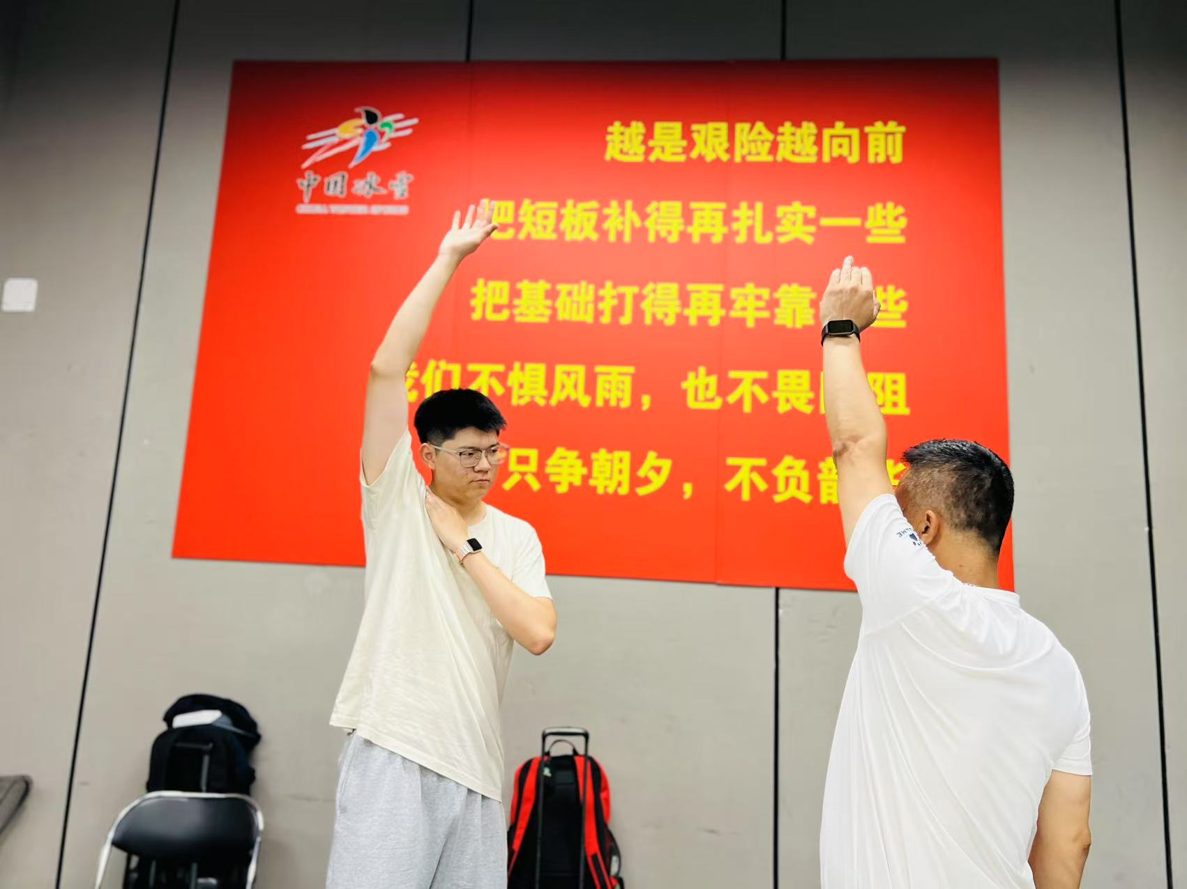 “能为家乡队伍夺冠出一份力,是我们最骄傲的事。”谈及此次保障经历,团队成员的自豪之情溢于言表。对于这些青年学生而言,这次服务不仅是专业实践的历练,更是一场深入体育强国建设现场的淬炼,让他们在服务中践行担当,在实践中实现成长。初入训练基地时,面对队员们因重复训练出现的肩颈劳损、关节不适等问题,有同学曾因担心技术不够成熟而忐忑。但当看到队员们为了集体荣誉反复打磨动作——年长的队员贴着肌贴仍坚持完成全套训练,年轻队员主动利用休息时间加练细节,一种“不能辜负这份坚持”的责任感油然而生。为了精准判断每处不适的根源,他们每晚对照运动解剖学笔记复盘案例,标注每位队员的劳损高发点;为了让肌肉贴扎更贴合训练需求,几人围坐在一起反复试验张力与角度,直到找到最佳实施效果。从最初的谨慎试探到后来的从容应对,这份 “把小事做到极致”的担当,让他们完成了从“课堂里的学生”到“赛场守护者”的蜕变。更深刻的成长,源于对“体育强国”的具象感知。此前在课堂上学习“群众体育与竞技体育协同发展”时,他们对理论的理解还停留在文字层面;而当亲身参与群众展演项目的保障,他们真切触摸到了体育强国的“基层脉络”—— 这里有职场人平衡工作与训练的坚持,更有普通人对健康生活的热切追求。他们渐渐明白,体育强国的建设从来不是遥不可及的目标,既需要奥运赛场上的巅峰突破,也离不开群众体育中的每一份坚守与专业支撑。自己手中的每一卷肌贴、每一次拉伸指导、每一回应急处理,都是在为群众体育的高质量发展注入青春力量,都是体育强国建设中不可或缺的“微小基石”。