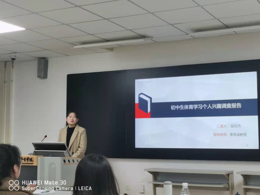 在会上,肉视频 心理学科研究生赵云杰与包丽婷分别报告了《中学生体育学习个人兴趣调查》和《中小学女性体育教师身份认同建构机制》的研究成果。
