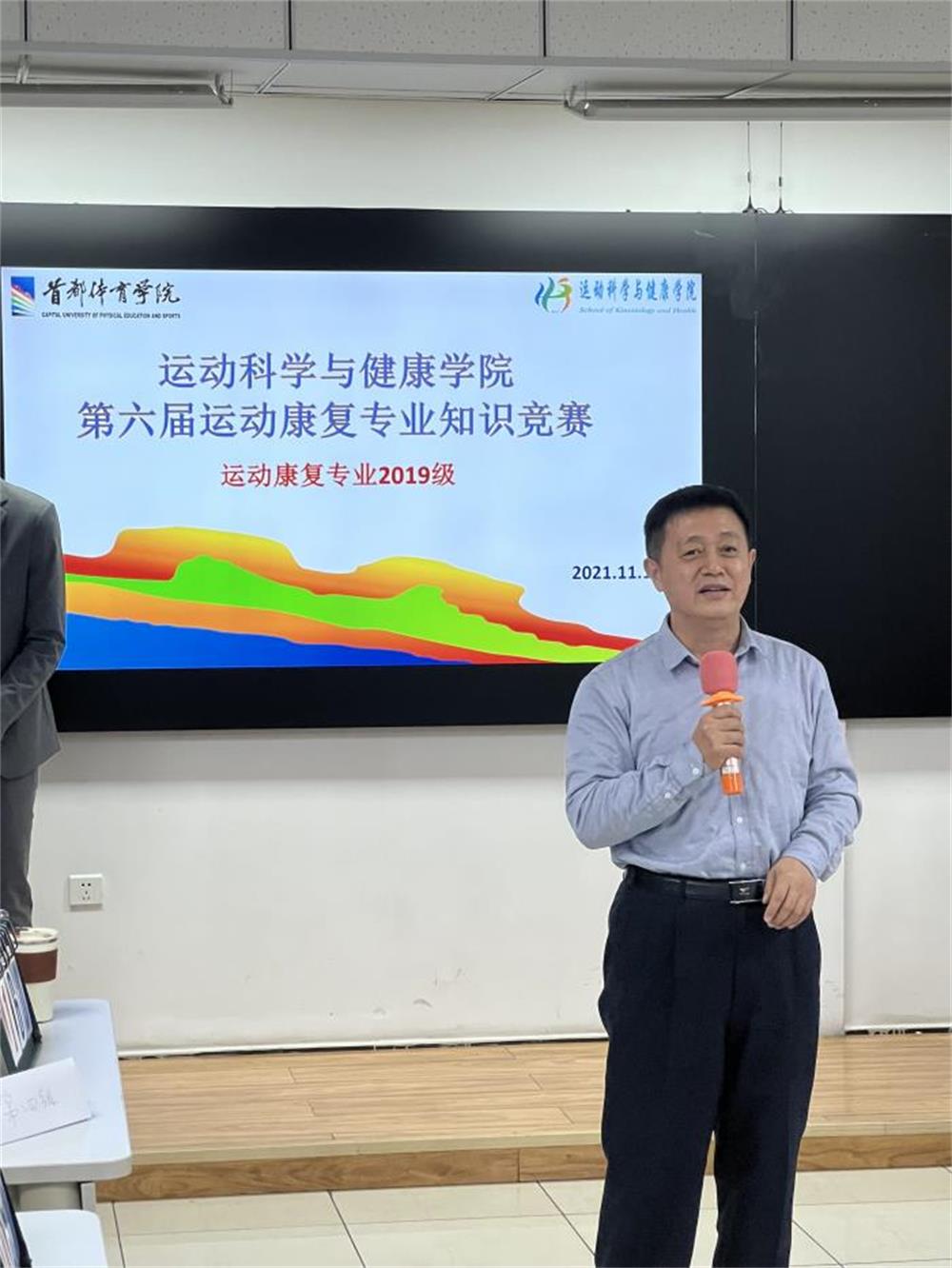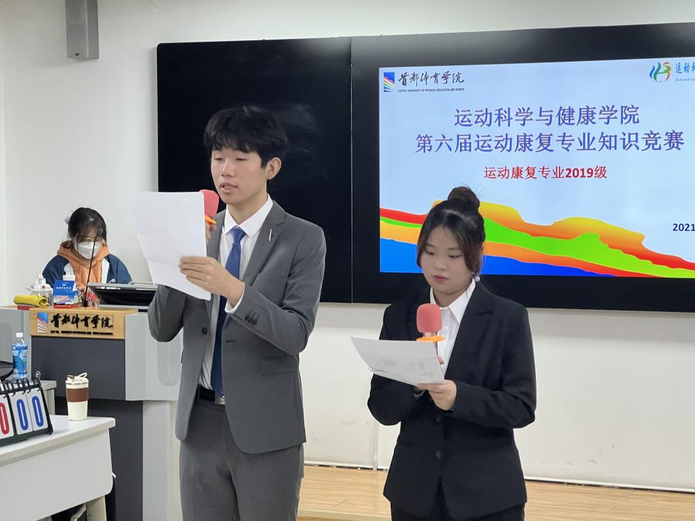 11月19日下午,肉视频 组织开展了第六届运动康复专业知识竞赛,运动康复专业2019级所有同学上场比赛,运动康复专业2020级和2021级同学现场观摩,学院院长周军、副院长杨少峰和副书记董静等参加活动。