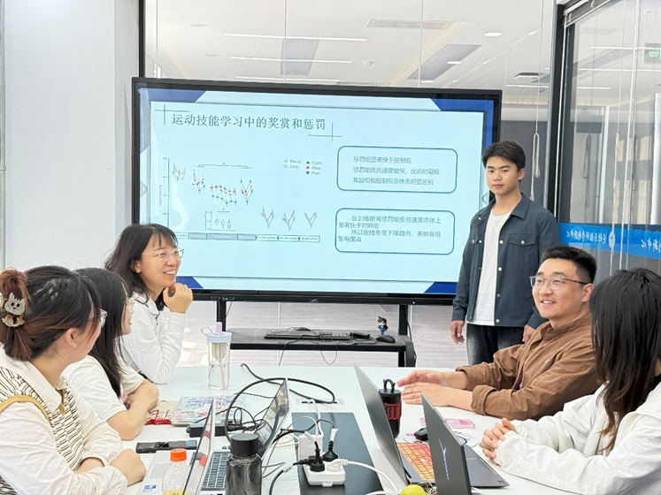 刘文博回顾了有关运动学习中奖惩效应的文献并指出在运动技能学习中,奖赏和惩罚通过不同神经机制调节行为表现。奖赏(如金钱、表扬)通过激活多巴胺能系统,增强动作巩固和动机,促进技能获取;而惩罚(如扣除金钱、错误反馈、电刺激)通过激发警觉性学习,优化错误修正,但可能引发窒息效应。研究表明,奖赏更利于长期技能保持,而惩罚在快速纠错中更有效。两者结合可平衡学习效率与稳定性,但需根据任务复杂度及个体差异调整比例,以最大化学习效果。神经可塑性在这一过程中起关键作用。随后,现场师生围绕生活中的奖惩效应和运动学习相关实验范式进行了交流讨论。