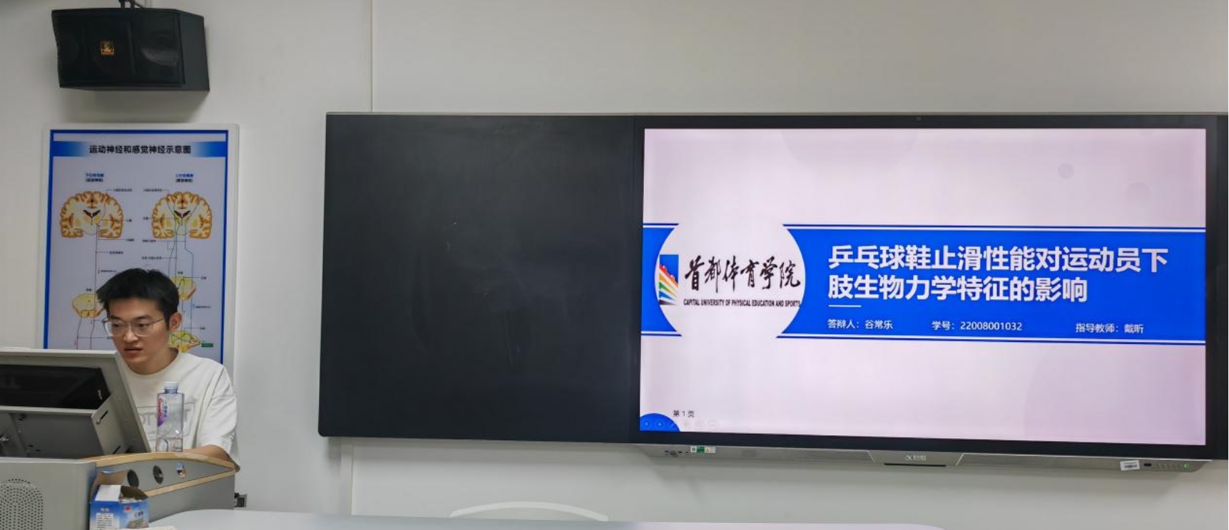 谷常乐同学以“乒乓球止滑性能对运动员下肢生物力学特征的影响”为主题,讲解了如何使用国内外相关领域普遍认可并采用的标准测试方法量化乒乓球鞋的止滑性能,并利用运动生物力学的原理与方法对乒乓球运动中常见的并步和交叉步步法动作进行分析,比较乒乓球鞋不同的止滑性能对运动员运动过程中下肢生物力学特征的影响,探索不同球鞋止滑性能对下肢运动及损伤的影响,为乒乓球鞋的设计和运动员选鞋提供理论支持和实验依据。