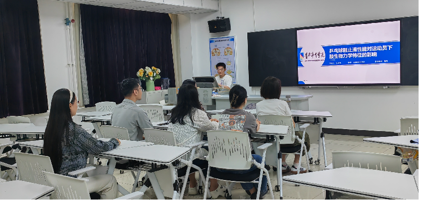 在教学楼101B举办第四期师生微沙龙。本期主讲人是运动人体科学专业运动生物力学与解剖学方向22级硕士研究生谷常乐,点评教师为戴昕老师和郑义老师。